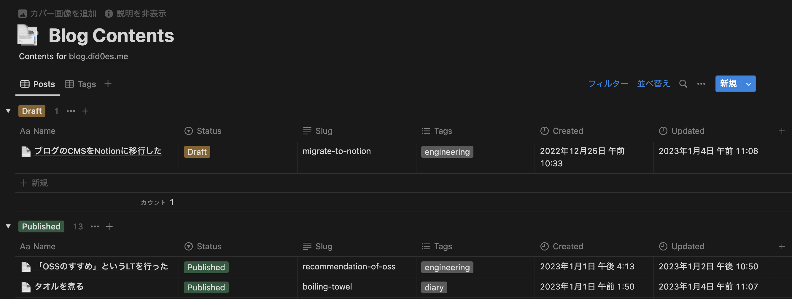 今までは Contentful でこのブログの記事を管理していましたが Notion に移行しました。